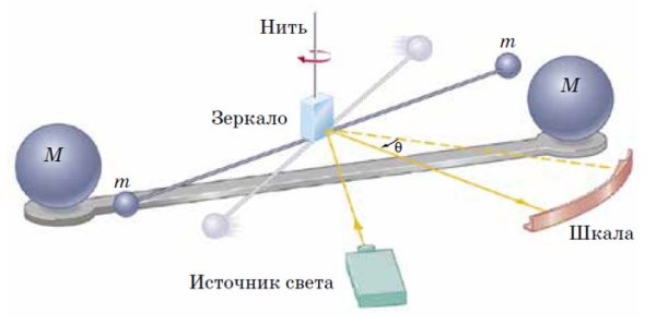 ![Эксперимент Генри Кавендиша крутильные весы]()