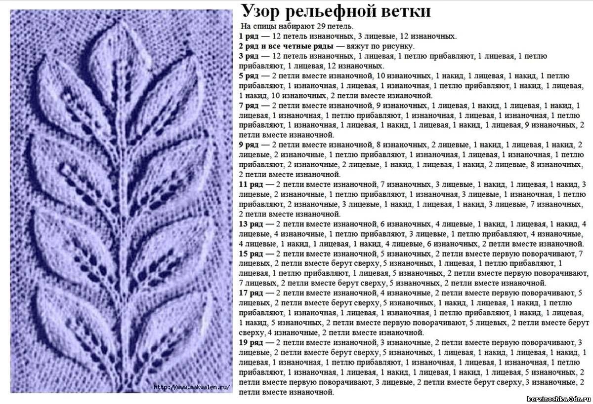 Вязание спицами рельефные узоры и схемы с описанием бесплатно
