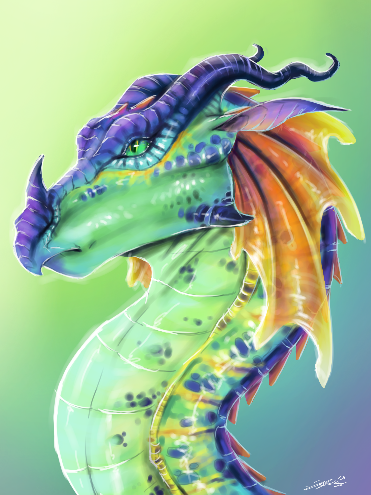 Зелено фиолетовый дракон