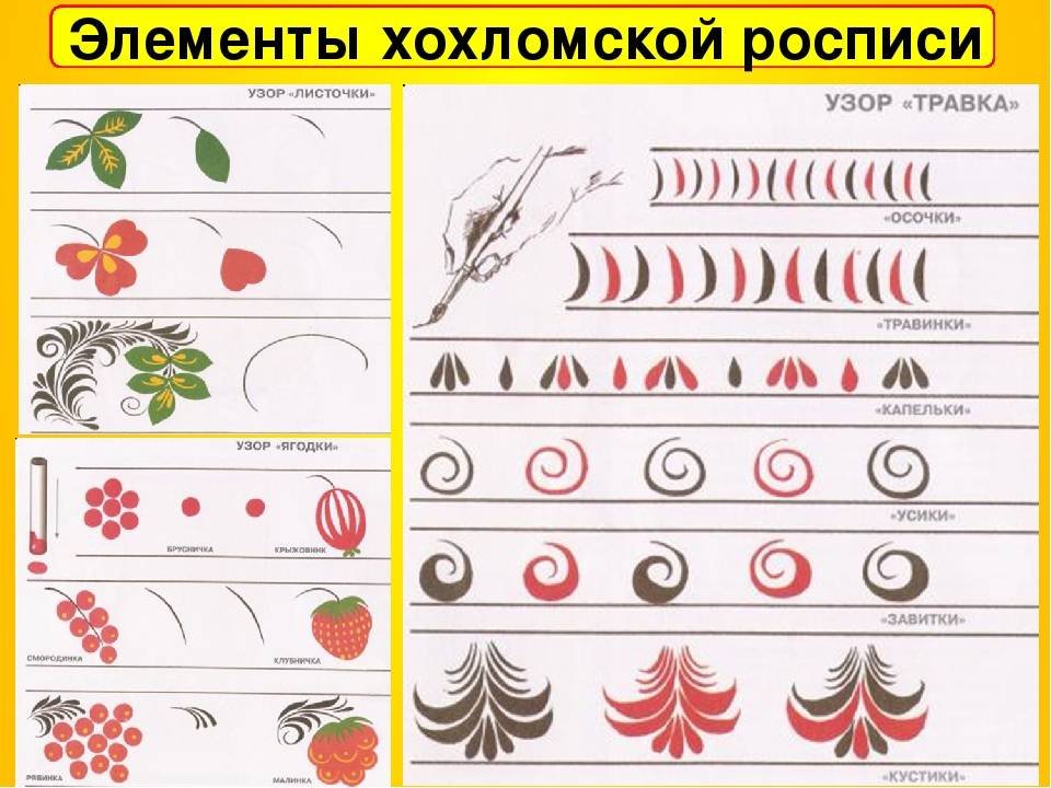 Основные элементы хохломской росписи для детей