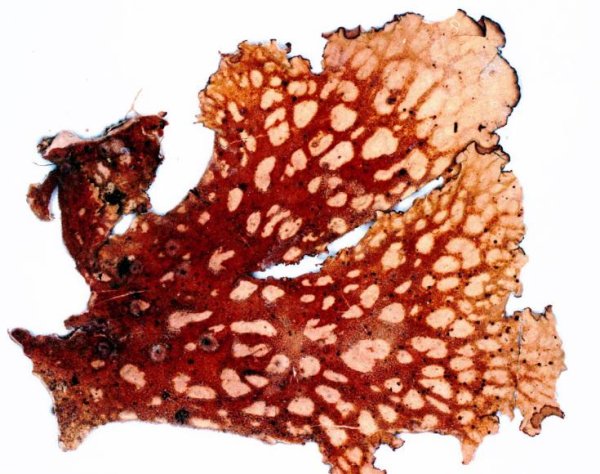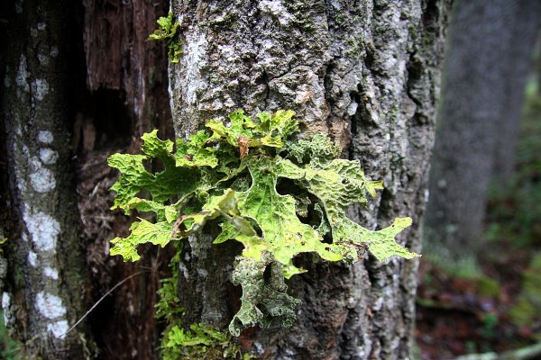 Лобария легочная (Lobaria pulmonaria) - крупный лишайник, обладающий особенным внешним видом и богатым рисунком на своих листьях. Этот лишайник характеризуется темно-зелеными или серо-зелеными листьями, которые имеют сложную форму и напоминают легкие. Рисунок на них представлен яркими угольно-черными пятнами и полосами, создавая впечатление мельчайших сосудов. Лобария легочная обитает во влажных и прохладных лесных зонах, часто можно встретить ее на старых деревьях и камнях. Этот лишайник является не только красивым растением, но и важным компонентом экосистемы, помогая задерживать влагу и фиксировать азот из воздуха.