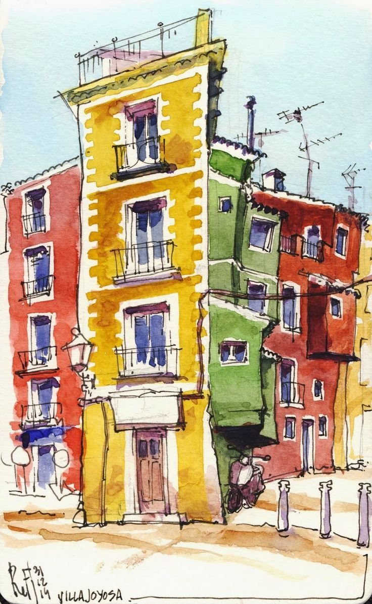 ![Городские зарисовки акварелью]()