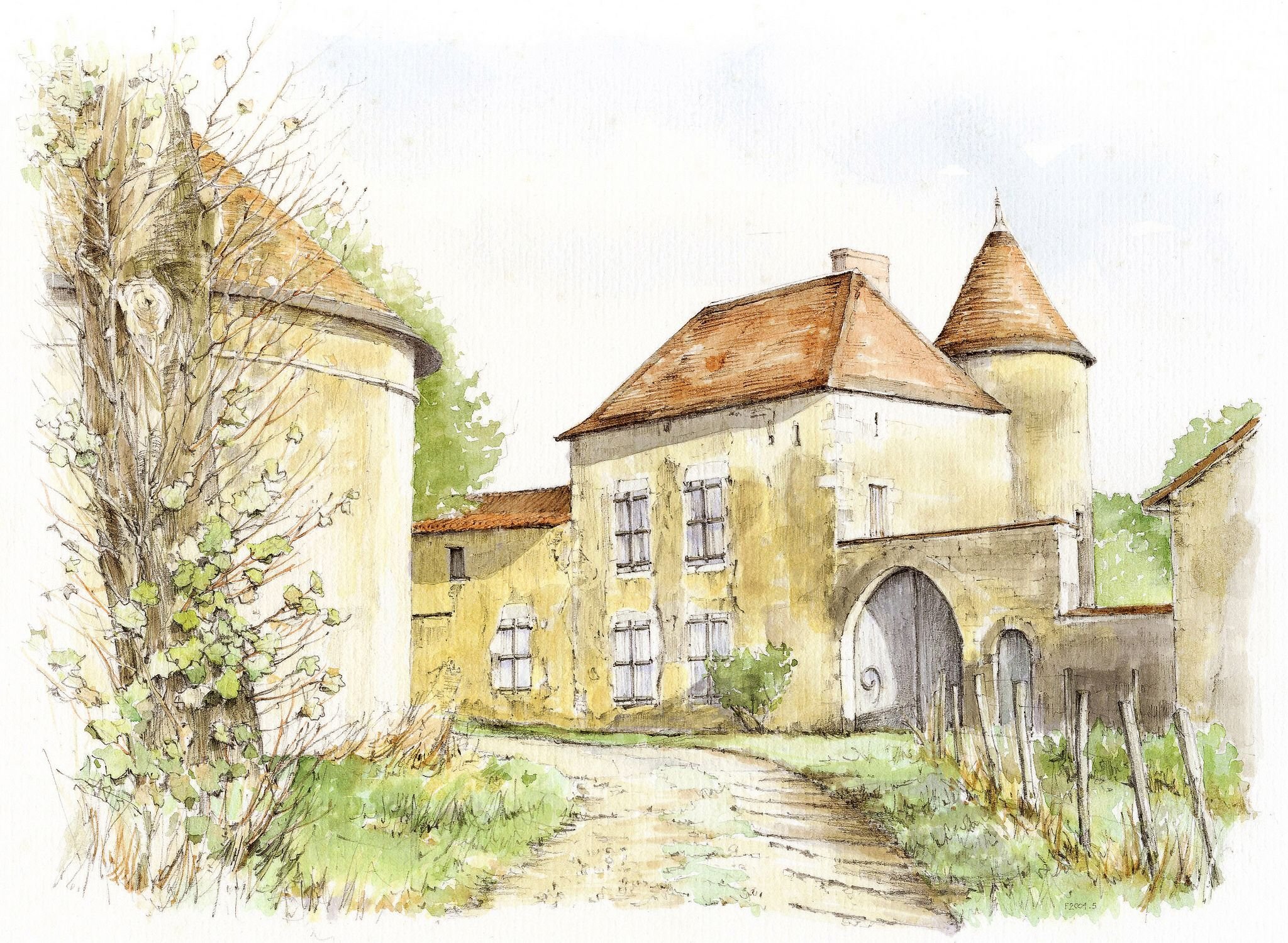![Скетчи акварелью деревня]()