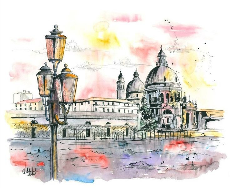 ![Акварельный скетчинг архитектура Италия]()