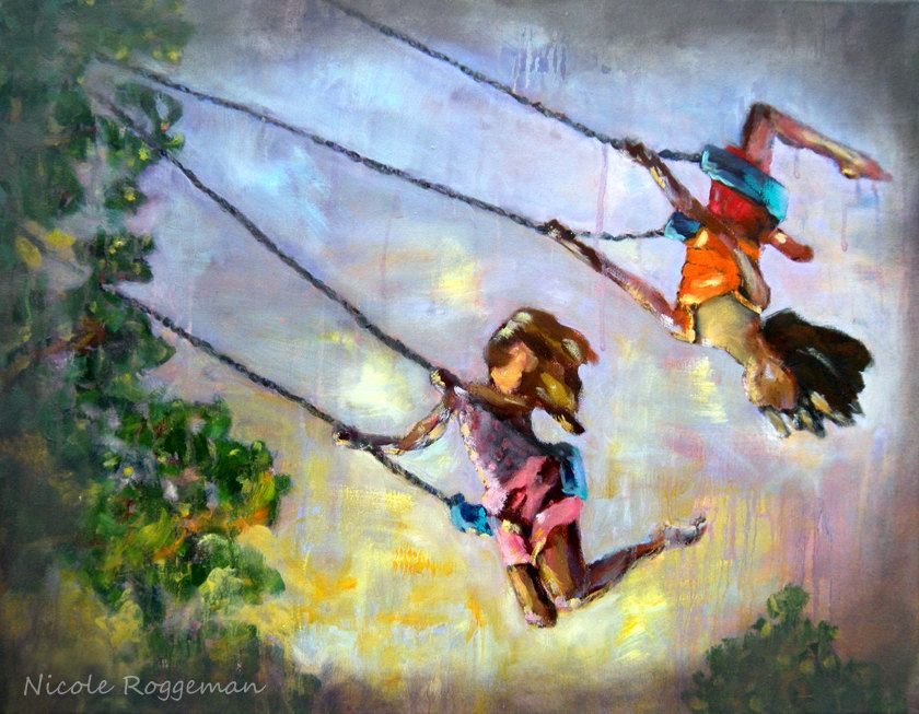 ![Дети на качелях живопись]()