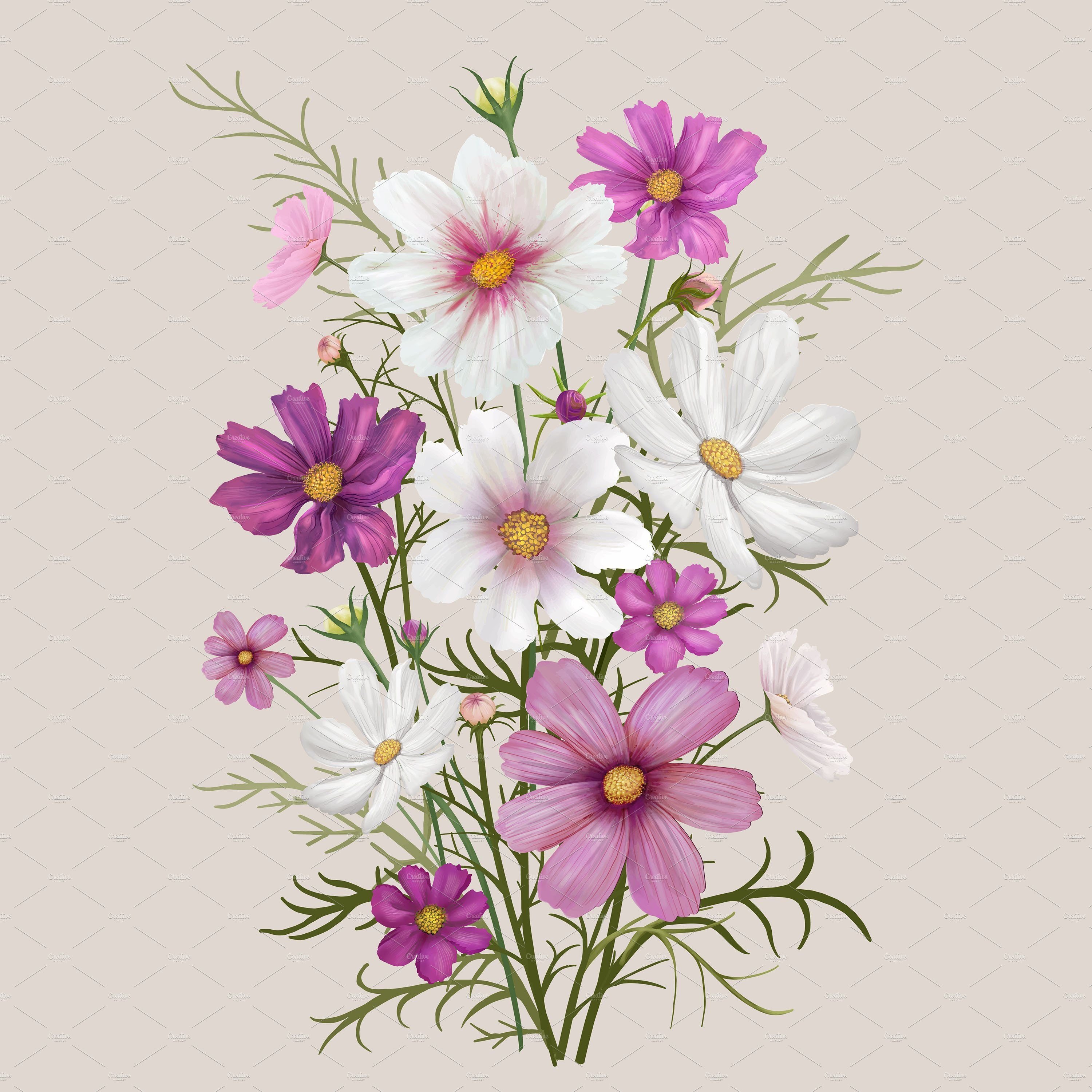 ![Космея дваждыперистая Ботаническая иллюстрация]()
