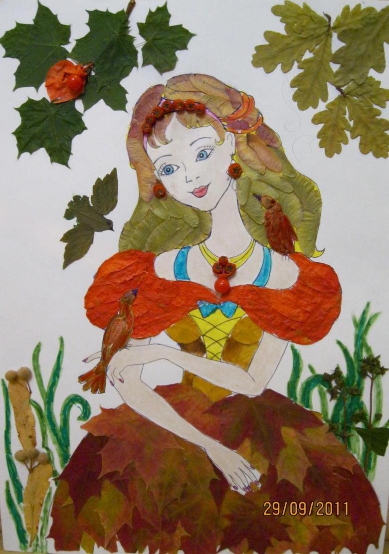 Поделка девушка осень из листьев