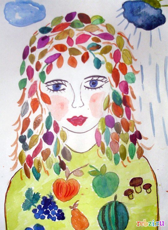 ![Портрет осени детские рисунки]()