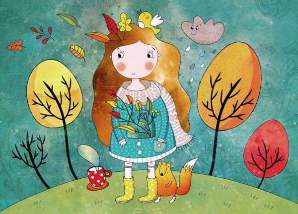 ![Девушка осень рисунок]()