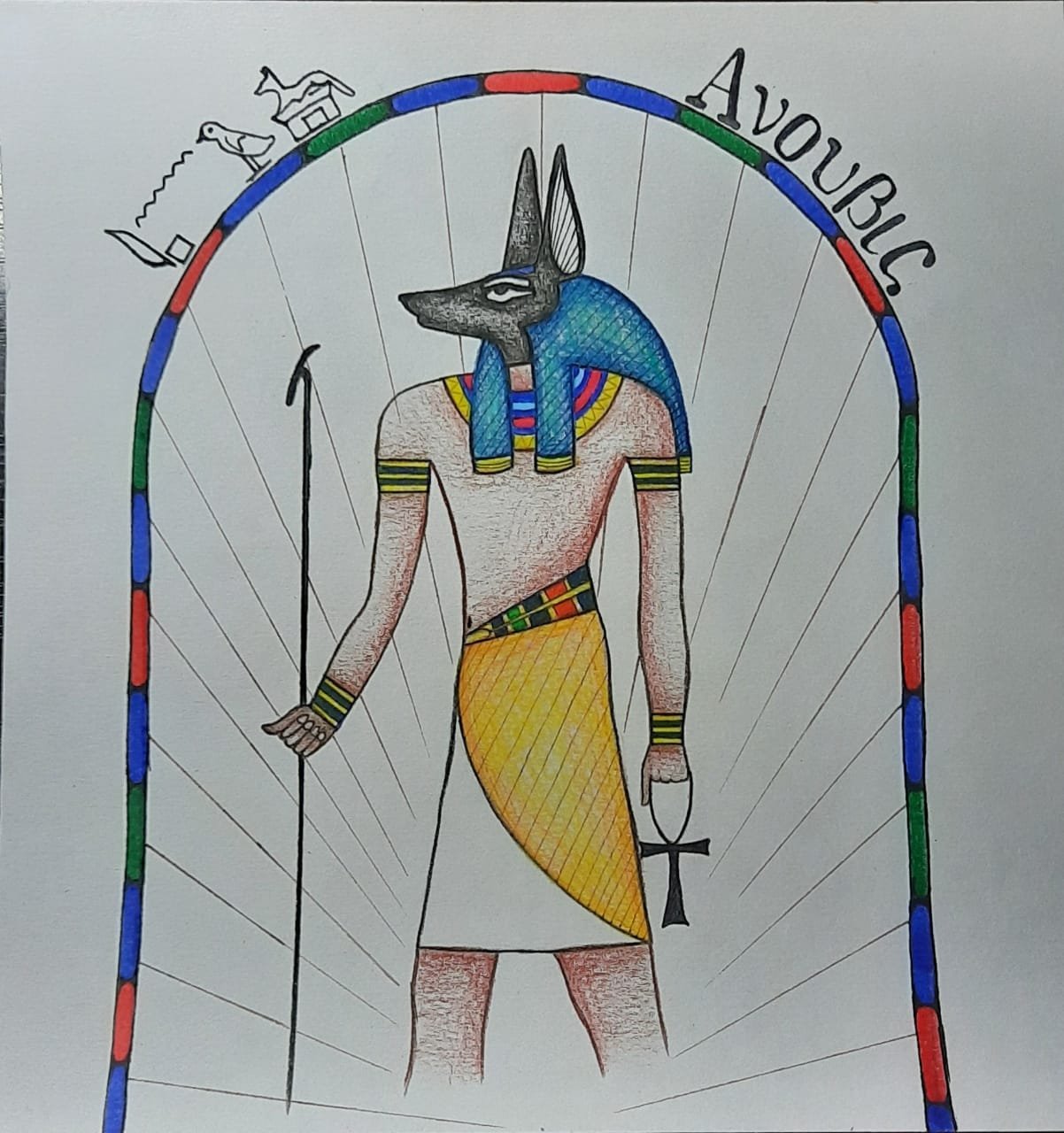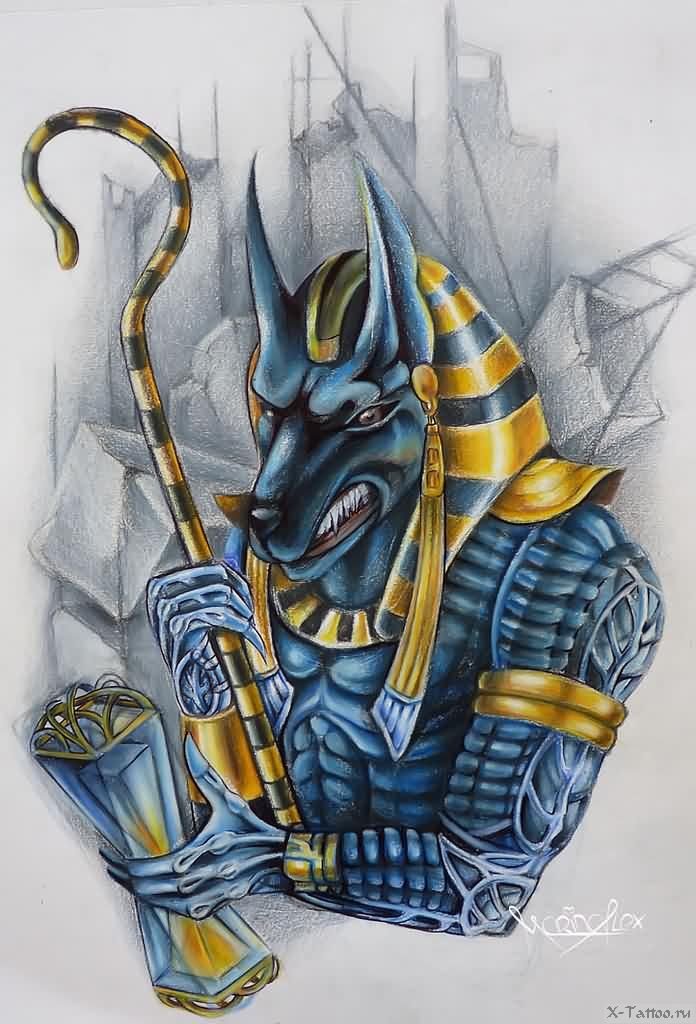 Цветной рисунок Анубиса великолепно передает мистическую и загадочную атмосферу древнеегипетского бога смерти. Очертания его тела, окрашенные в разные оттенки черного, создают эффект глубины и таинственности. Яркие золотые украшения и драгоценности, которыми он украшен, придают образу блеск и величие. При этом, цвета также позволяют передать характерные черты лица Анубиса - строгость, мудрость и некий загадочный блеск в его глазах. Весь рисунок заполнен изображением пустыни Эгипта, что еще больше подчеркивает связь с богом-хранителем мертвых. Этот цветной рисунок Анубиса является настоящим произведением искусства, которое поражает своей красотой и символикой.
