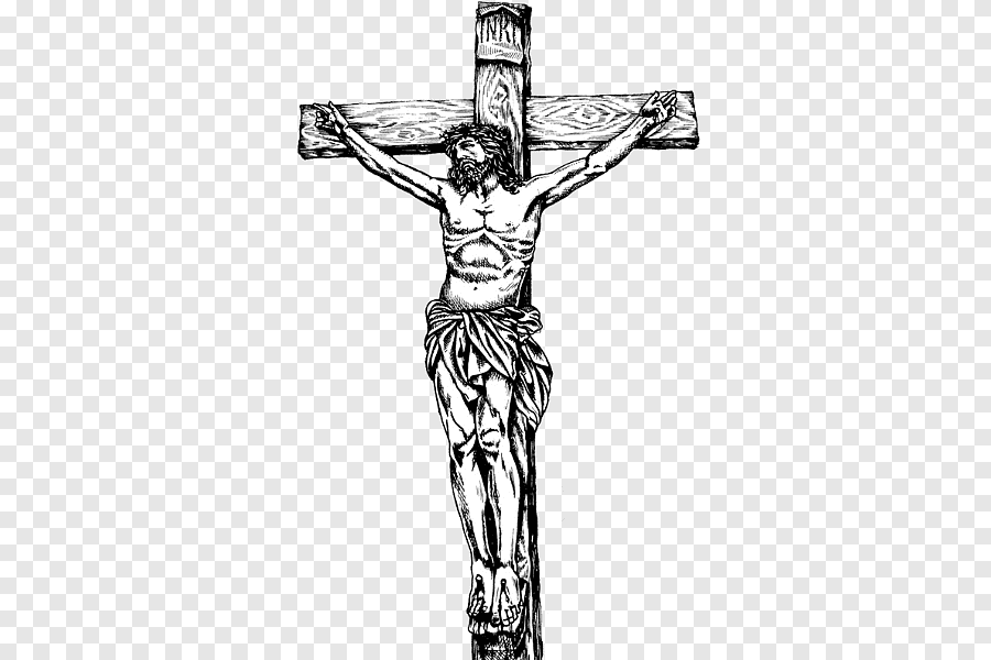 ![Распятие Иисуса Христа черно белое]()