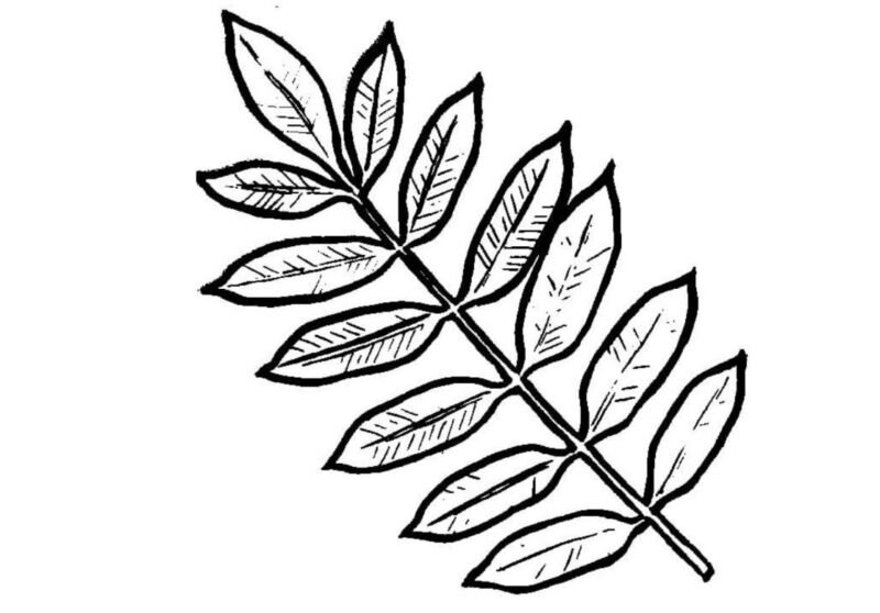 Лист рябины разукрашка