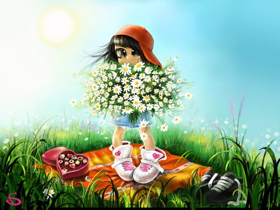 Девушка с цветами мультяшная