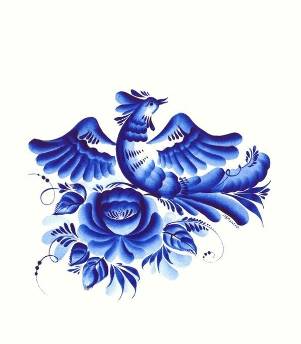 ![Гжельская роспись синяя птица]()