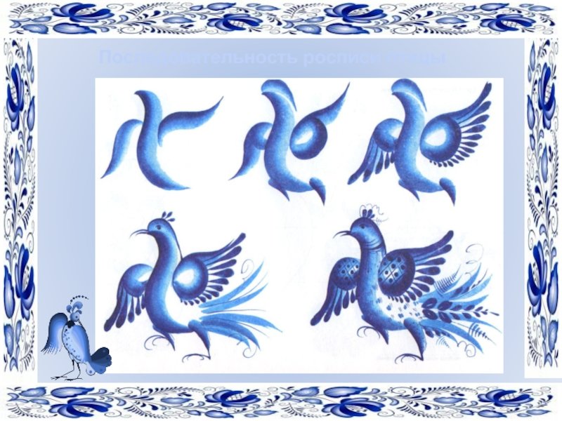Последовательность рисования гжельской птицы