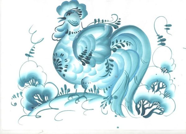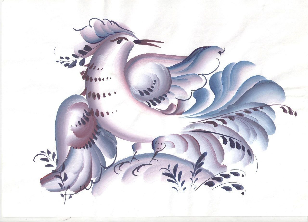 Рисование гжельской птицы
