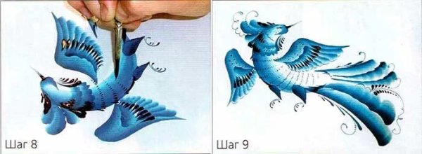 ![Птичка Гжель пошагово]()