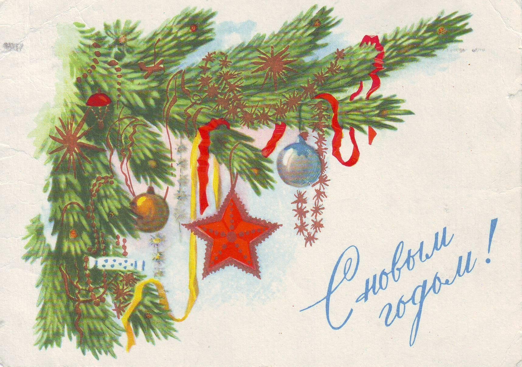 Советские новогодние открытки елка