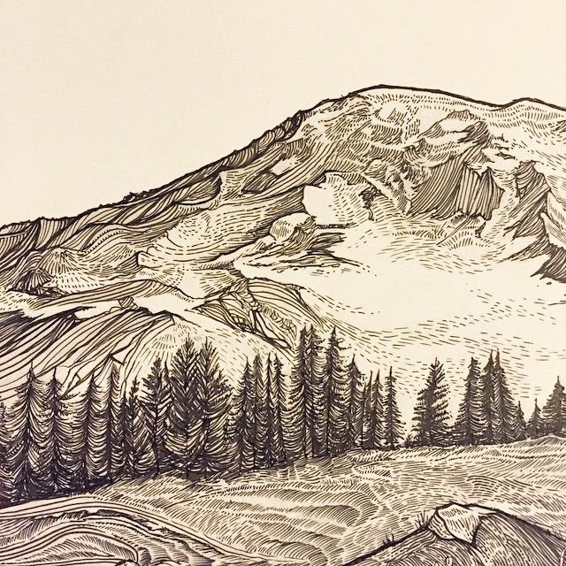 ![Горы эскиз карандашом]()