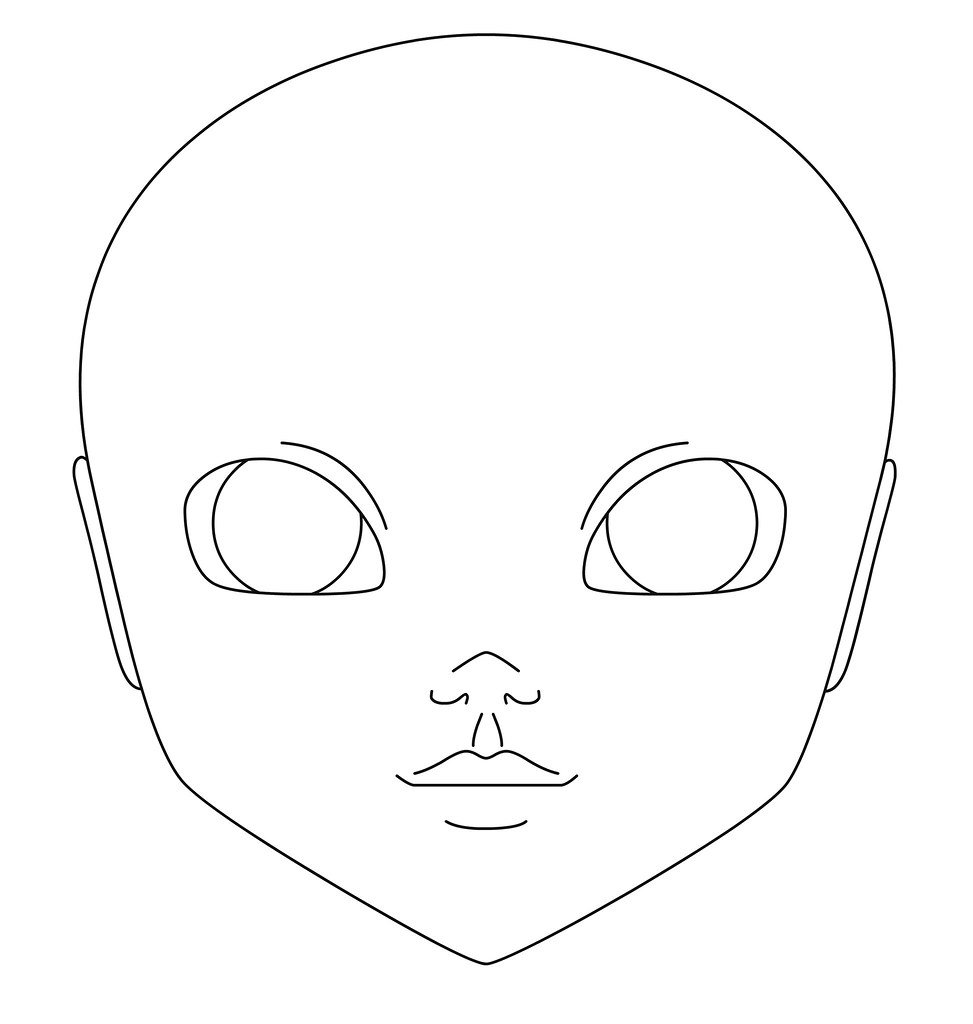 ![Трафарет для прорисовки лица куклы]()