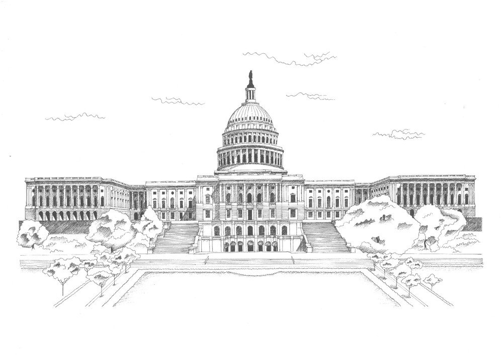 Капитолий Вашингтон рисунок карандашом