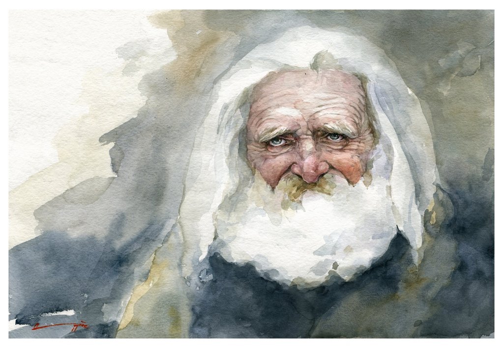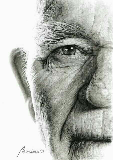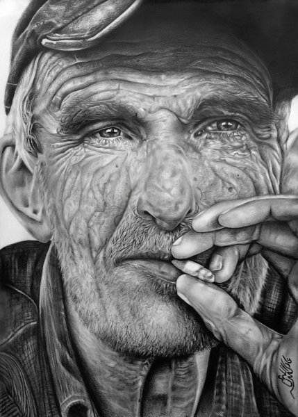 Рисунок лица старика захватывает взгляд своей выразительностью и глубиной. Каждая морщина на его веках и лбу рассказывает историю жизни, полную мудрости и опыта. Взгляд старика устремлен вдаль, словно он видит все пройденное и предвкушает будущее. Глубокие складки возле его глаз говорят о бессчетных смехе и слезах, которые он пережил. На его лице отражается спокойствие и достоинство, а серые волосы и седая борода добавляют ему почтенности. Этот рисунок напоминает нам о ценности времени и о том, что каждый человек несет в себе богатство жизненного опыта, которое необходимо уважать и ценить.