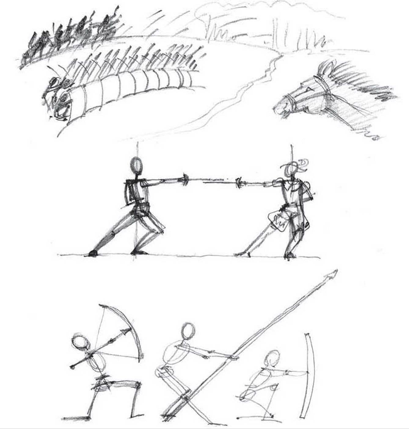 ![Графика Леонардо да Винчи битва при Ангиари]()