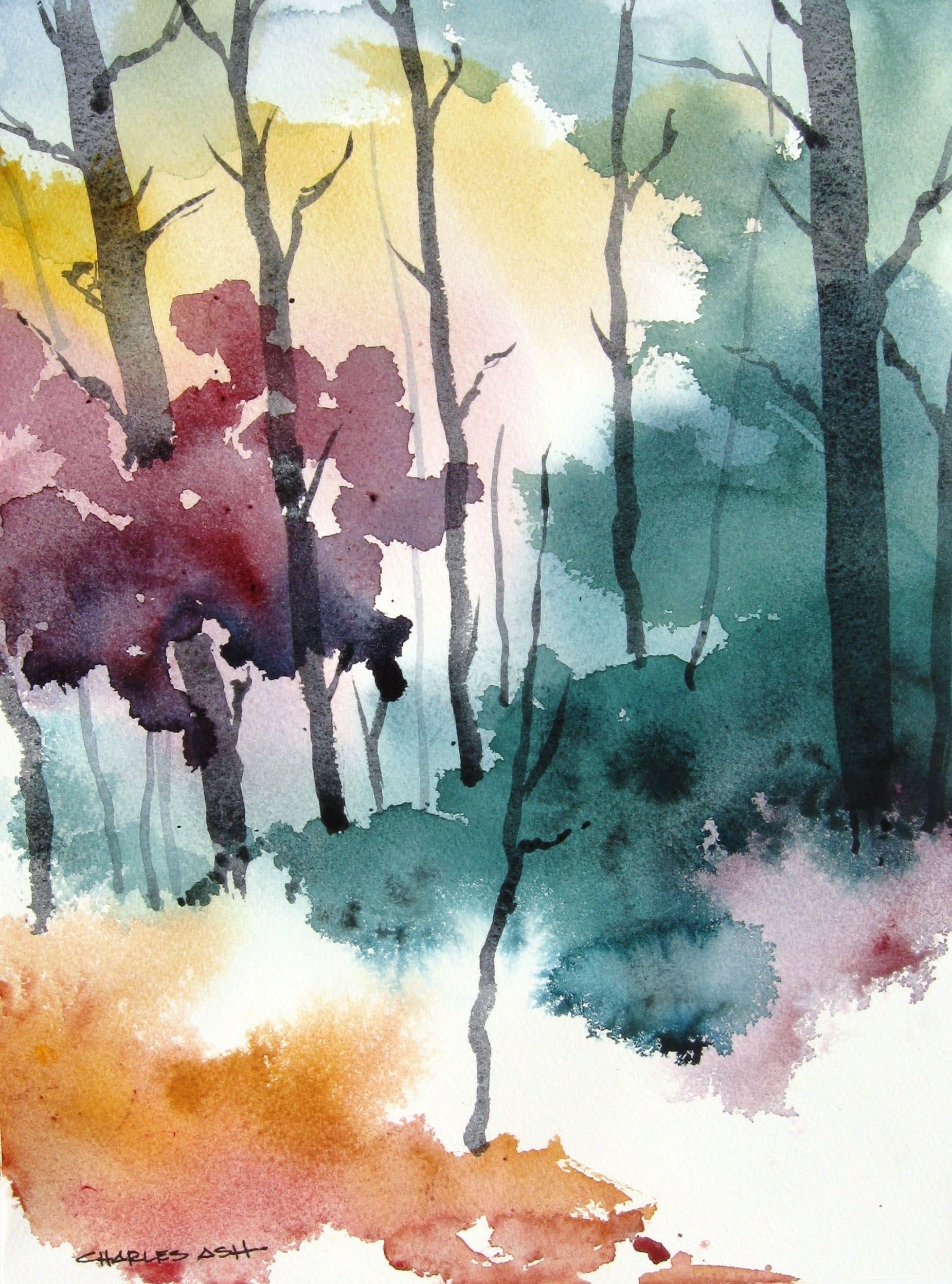 Акварель по сырому пейзаж