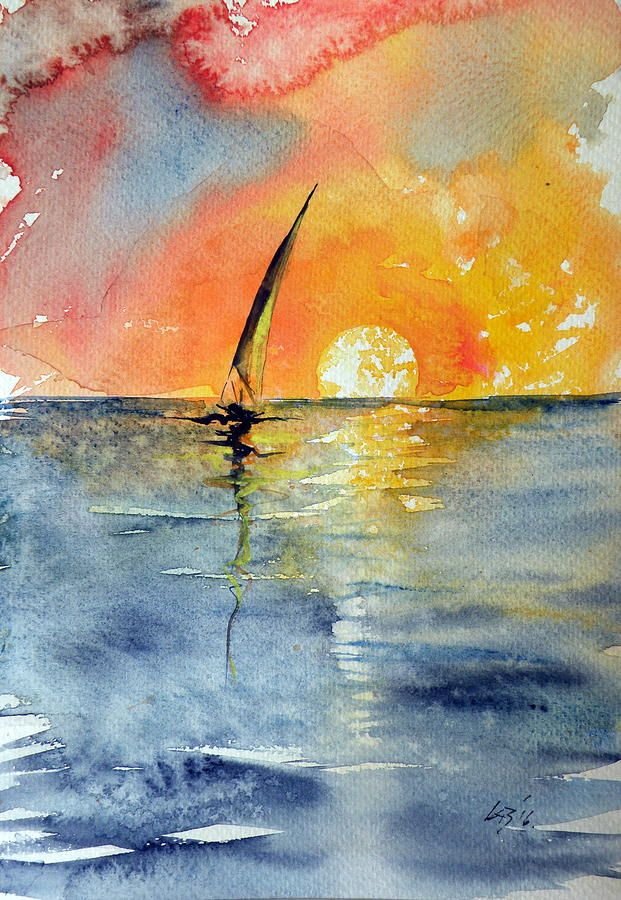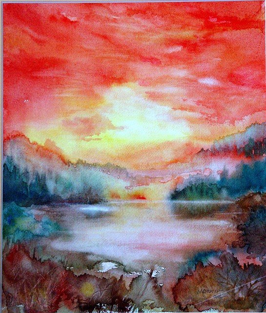 Акварель по сырому закат