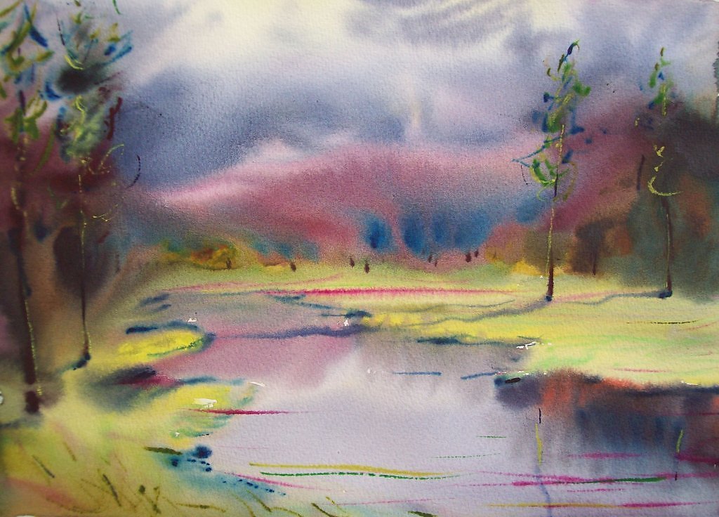 ![Акварель по сырому пейзаж]()