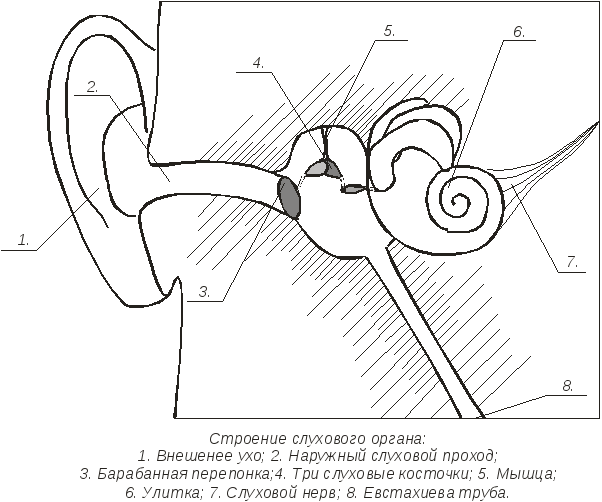 Строение слуха слухового анализатора