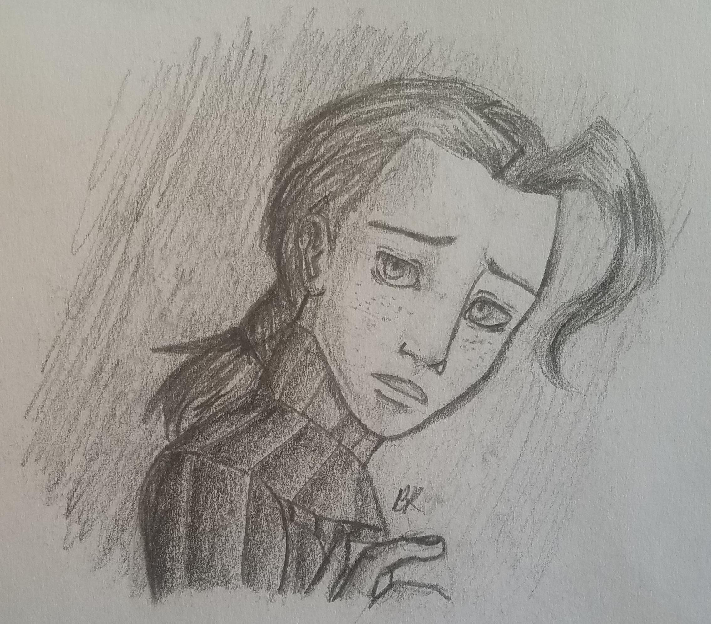 ![Рисунок девушки карандашом]()