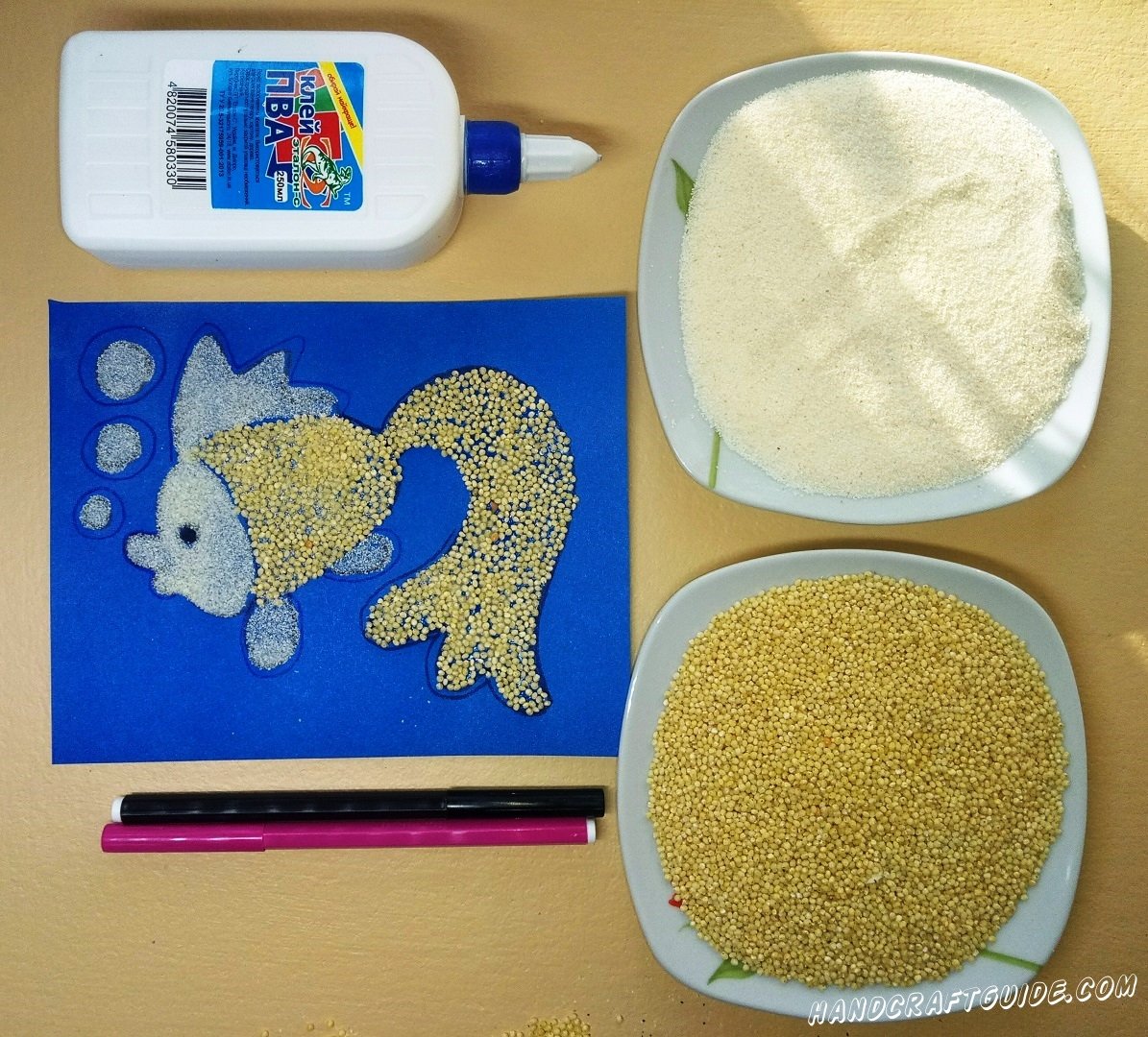 ![Аппликация из крупы]()