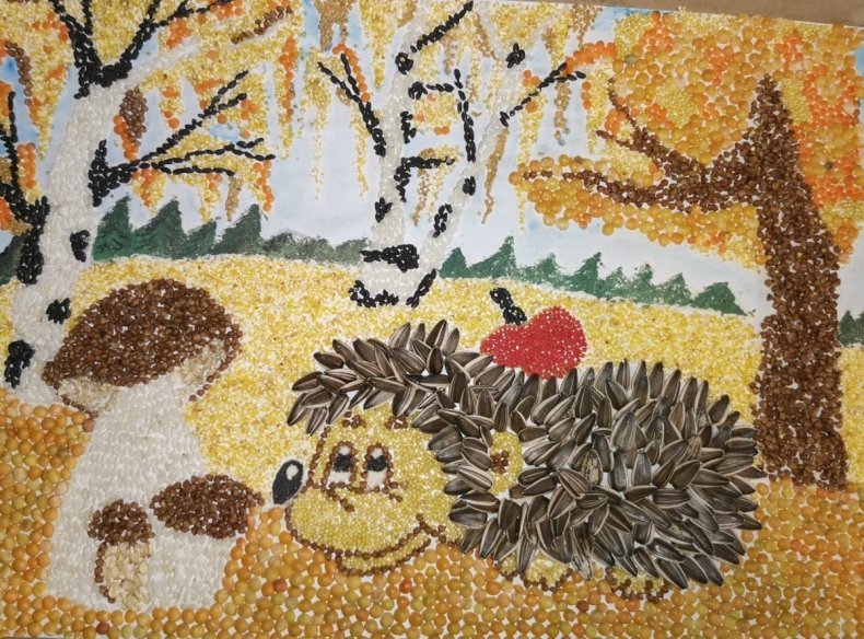 ![Аппликация из пшена]()