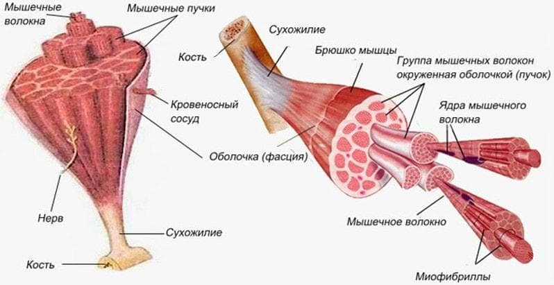 ![Строение мышц с пучками мышечных волокон]()