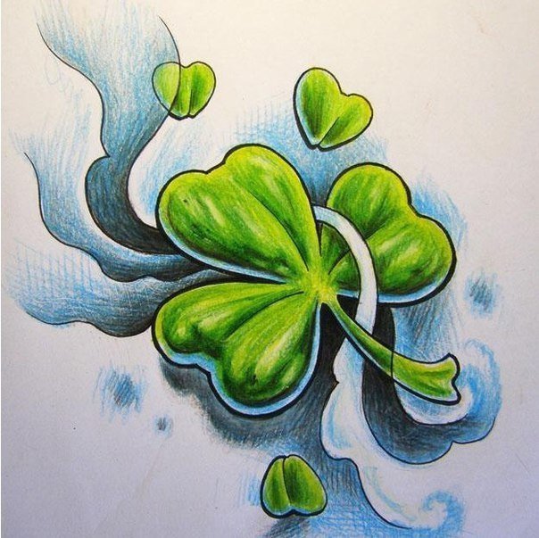 ![Тату Клевер четырехлистный эскизы]()
