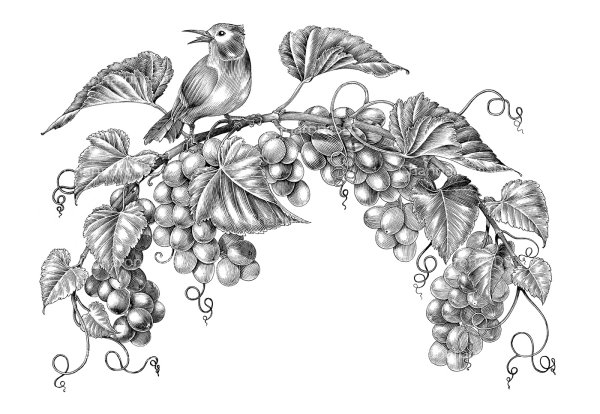 ![Виноградная лоза гравюра]()