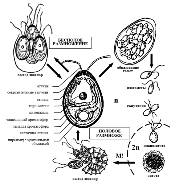 ![Цикл хламидомонады схема]()