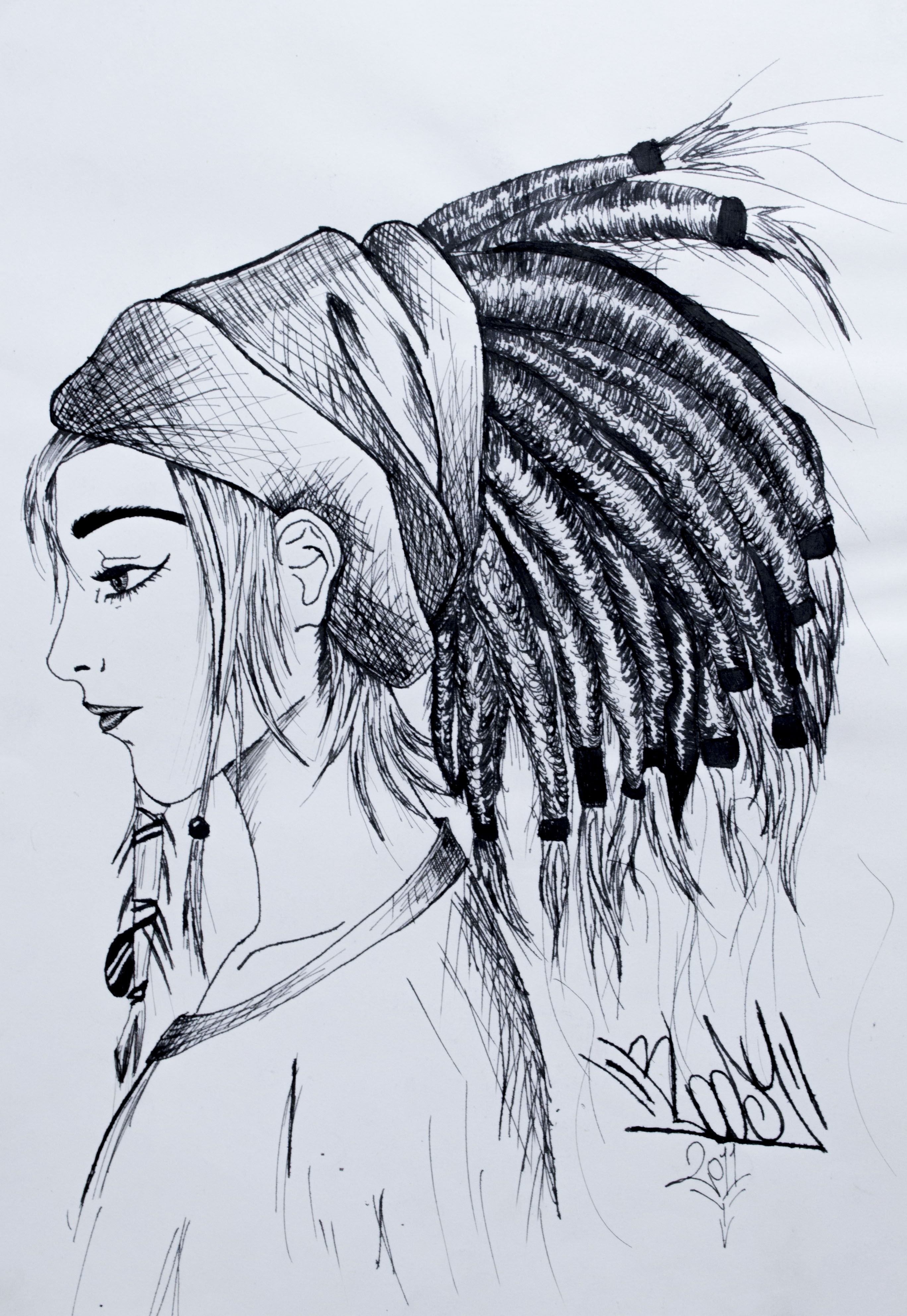 Девочка с дредами эскиз.