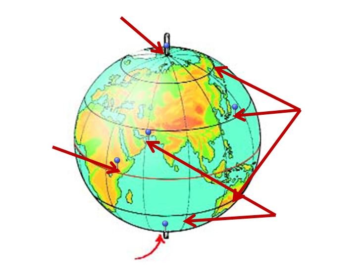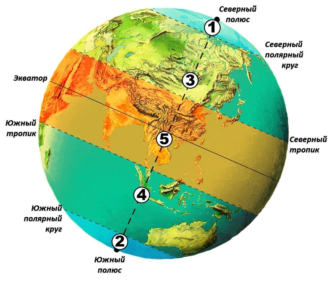 ![Южный полюс Северный Тропик Южный Полярный круг]()