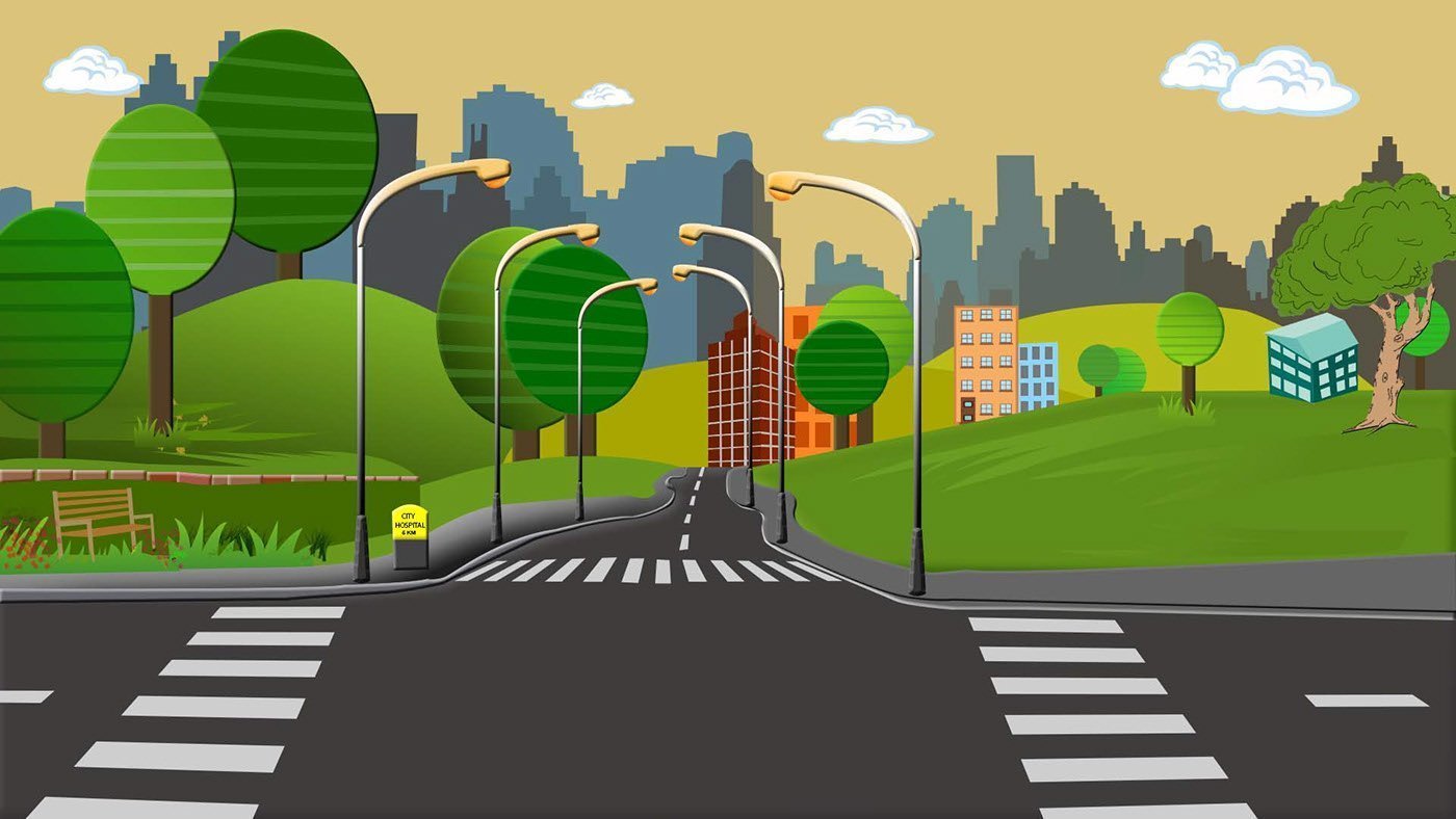 ![Мультяшная дорога в городе]()