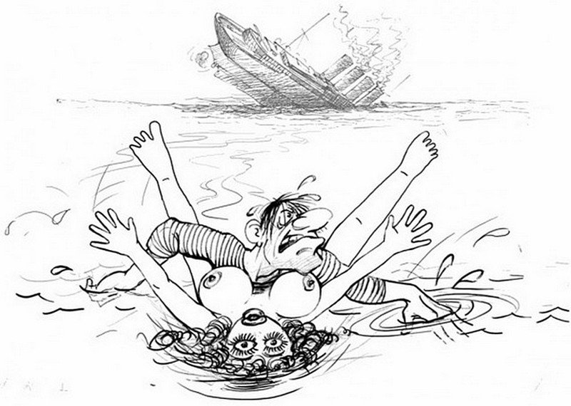 Человек тонет карикатура