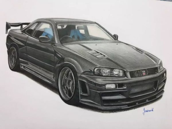 ![Ниссан Скайлайн 34 рисунок сзади]()