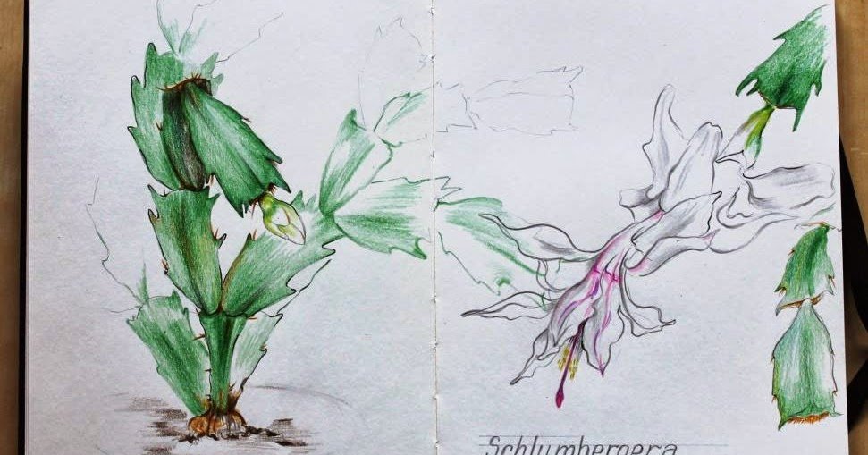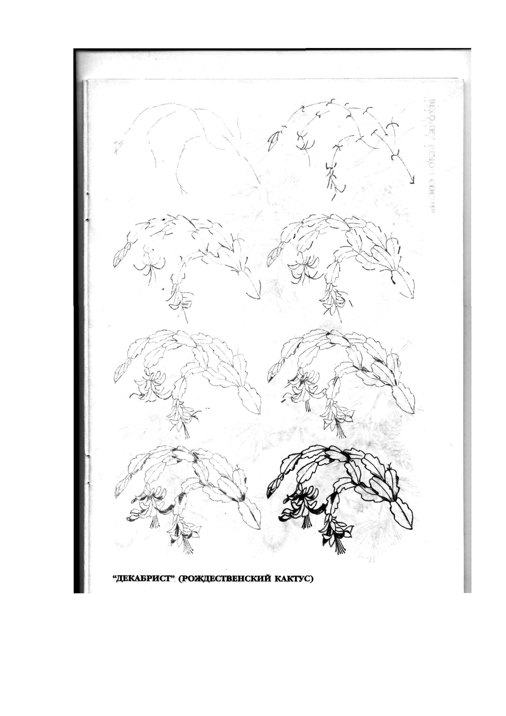 ![Цветок декабрист рисунок карандашом]()