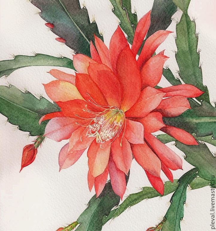 ![Декабрист цветок живопись]()