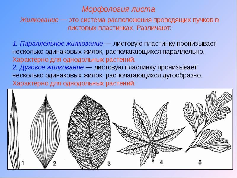 ![Типы жилкования листьев биология 5 класс]()
