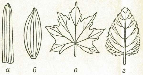 ![Типы жилкования листьев]()