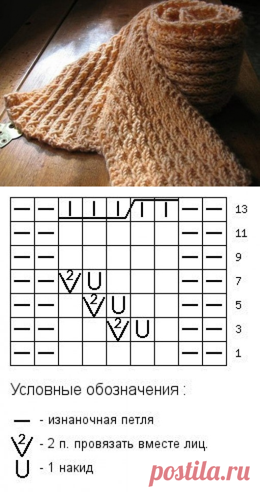 ![Схемы вязания спицами лицевые и изнаночные петли для шарфа]()