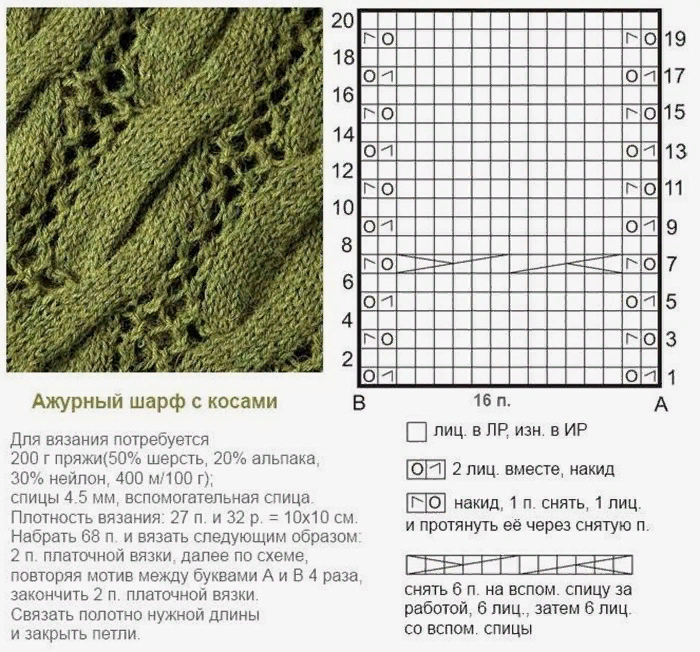 ![Вязание спицами узоры шарфа для женщин со схемами]()