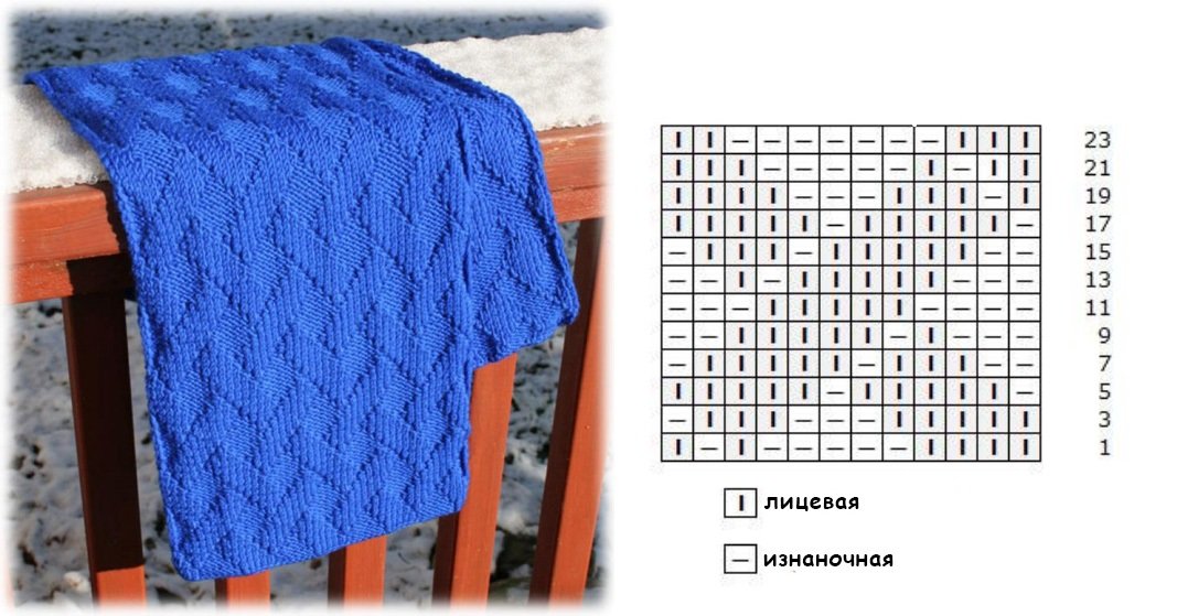 Схемы вязания спицами лицевые и изнаночные петли для шарфа